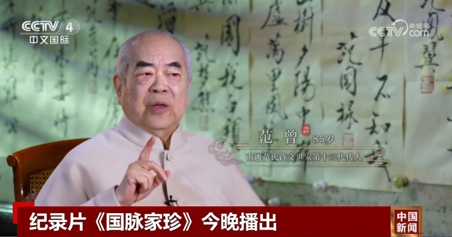 紀錄片《國脈家珍》從南通范氏詩文世家第十三代傳人范曾的視角,還原家族成員個性鮮明、造詣深厚的傳奇故事。他們或居于廟堂,持守高風峻節(jié),或隱于江湖,揮灑豪詩雄文,呈現(xiàn)“國運與家事榮辱相伴,時局與詩筆悲喜相連”的人物命運。該片結(jié)合歷代傳人的詩文,反映中國傳統(tǒng)文化綿延不息,展現(xiàn)范氏家族家風家教的細節(jié),探尋其延續(xù)的密碼。