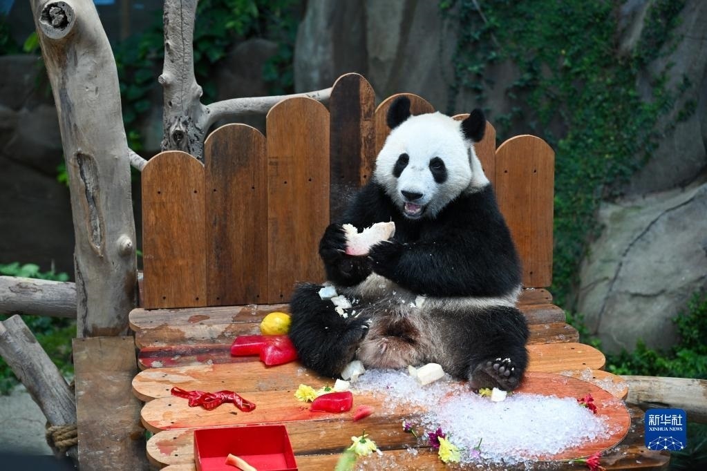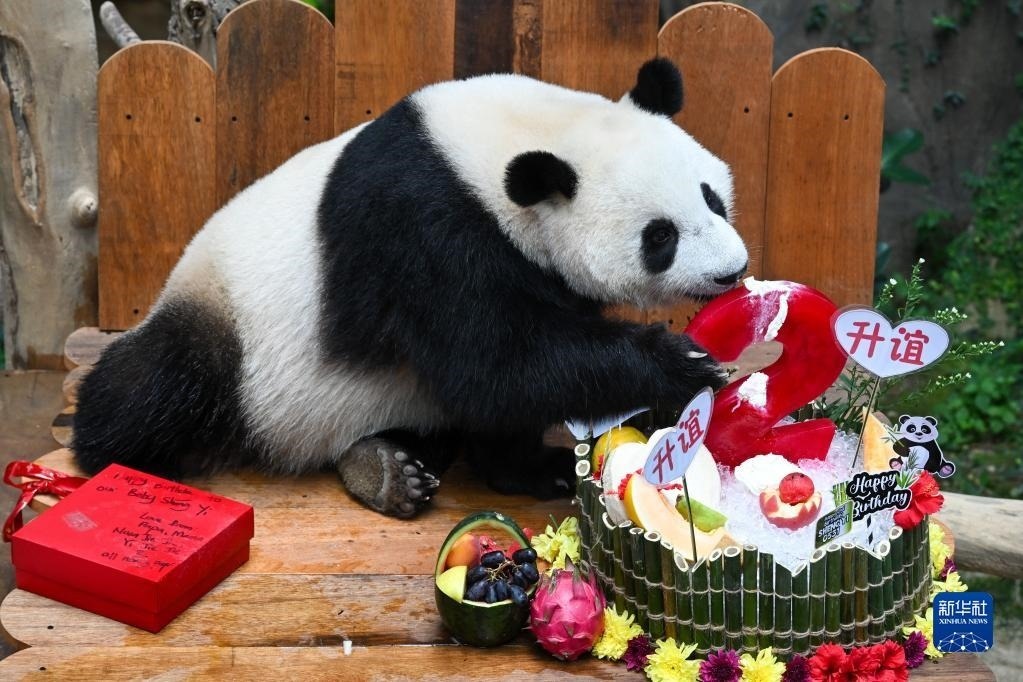 當日,大熊貓寶寶“升誼”迎來兩歲生日,動物園為它準備了特別的生日大餐,眾多民眾前往動物園為它慶生。“升誼”是中國旅馬大熊貓“興興”和“靚靚”生下的第三只寶寶,出生于2021年5月31日中馬建交47周年紀念日當天。新華社記者 朱煒 攝