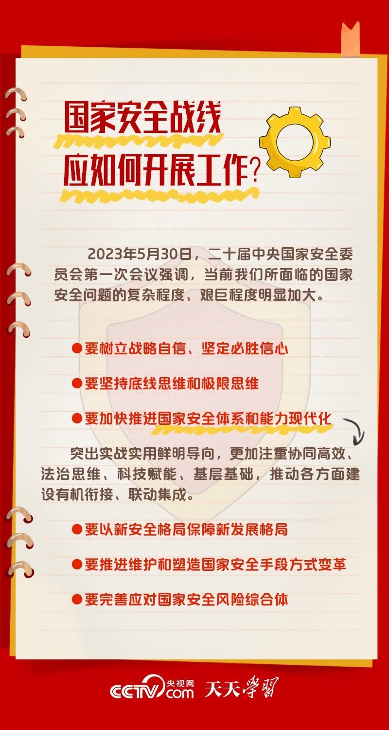 5月30日,習(xí)近平總書記主持召開二十屆中央國家安全委員會第一次會議時強調(diào),要全面貫徹黨的二十大精神,深刻認(rèn)識國家安全面臨的復(fù)雜嚴(yán)峻形勢,正確把握重大國家安全問題,加快推進(jìn)國家安全體系和能力現(xiàn)代化,以新安全格局保障新發(fā)展格局,努力開創(chuàng)國家安全工作新局面。