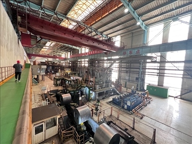 5月30日,本鋼三冷酸洗軋機聯(lián)合機組里一片繁忙。一個個幾十噸重的鋼卷整齊有序地在傳送帶上穿梭著,從上料、拆卷、拉矯、酸洗到成品卸卷……軋機段最大速度可以達到1500米/分鐘。
