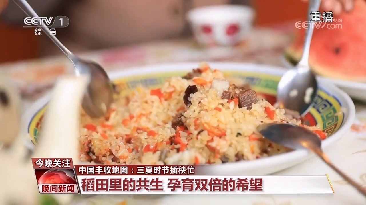 中國人的農(nóng)業(yè)智慧,不僅體現(xiàn)在搶抓農(nóng)時(shí),在同一片水田里,水稻秧苗們總會(huì)有意想不到的鄰居,稻田里養(yǎng)螃蟹,養(yǎng)螺螄、養(yǎng)魚、養(yǎng)蝦,通過共生的方式,孕育雙倍的希望。而在農(nóng)民辛苦勞作的同時(shí),成群的白鷺或飛過天空,或在稻田里悠閑地踱步、覓食,成為三夏時(shí)節(jié),最自然和諧的田園畫卷。