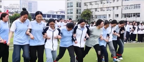 在四川廣漢中學(xué),一場(chǎng)專(zhuān)門(mén)針對(duì)高三學(xué)子的趣味接力賽正在開(kāi)展。同學(xué)們?cè)谕瓿少惻堋⑻K等項(xiàng)目的同時(shí),需要團(tuán)隊(duì)協(xié)作完成顛網(wǎng)球、射門(mén)等項(xiàng)目。