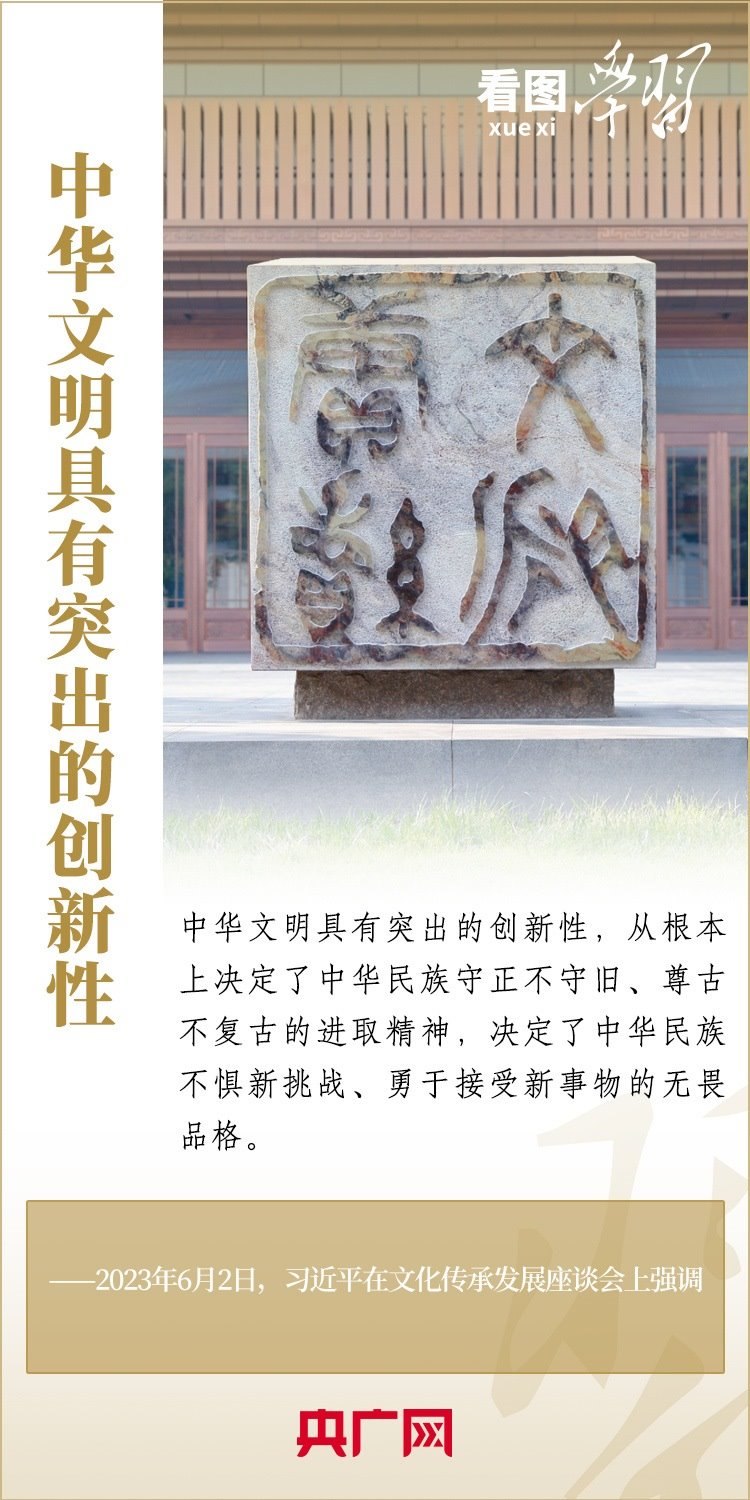 6月2日,習(xí)近平總書記在北京出席文化傳承發(fā)展座談會并發(fā)表重要講話,強(qiáng)調(diào)中國文化源遠(yuǎn)流長,中華文明博大精深。只有全面深入了解中華文明的歷史,才能更有效地推動(dòng)中華優(yōu)秀傳統(tǒng)文化創(chuàng)造性轉(zhuǎn)化、創(chuàng)新性發(fā)展,更有力地推進(jìn)中國特色社會主義文化建設(shè),建設(shè)中華民族現(xiàn)代文明。會上,總書記全面、深刻地總結(jié)了中華文明的五個(gè)突出特性。一起來學(xué)習(xí)!