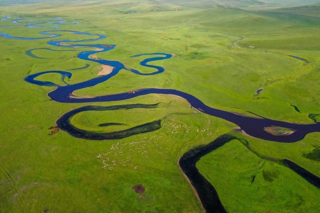 這是位于內(nèi)蒙古呼倫貝爾市陳巴爾虎旗境內(nèi)的莫日格勒河(2021年7月21日攝,無人機照片)。新華社記者 連振 攝