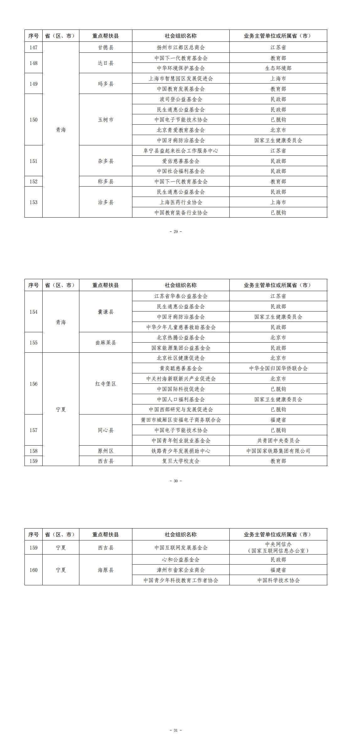 央視網(wǎng)消息:據(jù)民政部網(wǎng)站消息,為深入貫徹落實(shí)黨的二十大決策部署,根據(jù)《社會(huì)組織助力鄉(xiāng)村振興專項(xiàng)行動(dòng)方案》,民政部、國家鄉(xiāng)村振興局在社會(huì)組織自愿報(bào)名、有關(guān)部門推薦申報(bào)、160個(gè)國家鄉(xiāng)村振興重點(diǎn)幫扶縣同意對(duì)接的基礎(chǔ)上,形成了《全國性社會(huì)組織、東部?。ㄖ陛犑校┥鐣?huì)組織與160個(gè)國家鄉(xiāng)村振興重點(diǎn)幫扶縣結(jié)對(duì)幫扶名單》(見附件),現(xiàn)予印發(fā)執(zhí)行,有關(guān)工作通知如下。