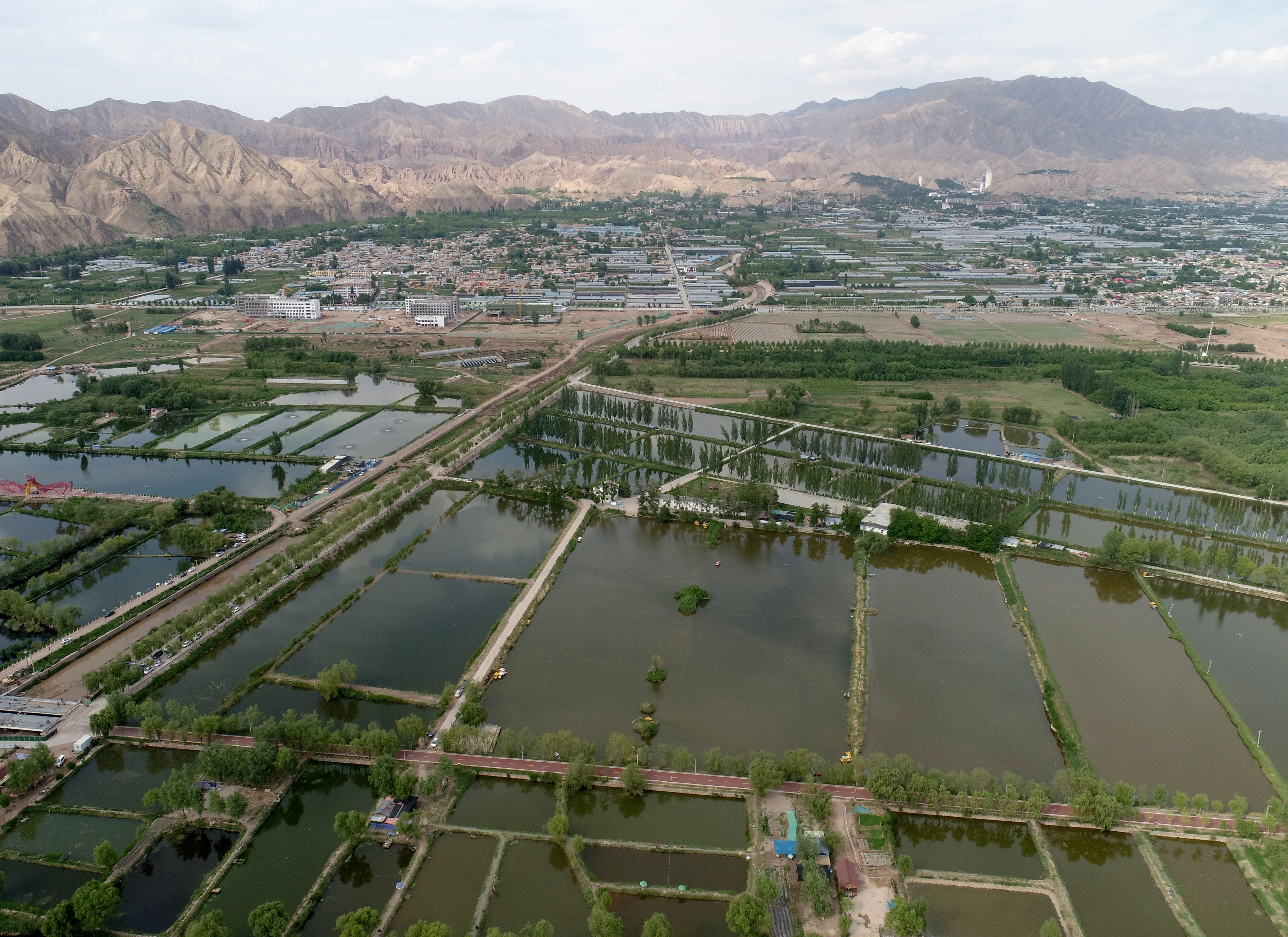 初夏時(shí)節(jié),甘肅省永靖縣太極島黃河濕地風(fēng)光秀麗,島上蘆草叢生,綠意盎然,游客乘船在蘆葦蕩里游玩。沿河公路與狹長(zhǎng)的黃河交相輝映,星羅棋布的人工魚(yú)塘宛如一塊塊玉石鑲嵌在大地上,勾勒出一幅美妙的山水田園畫(huà)卷。近年來(lái),永靖縣依托太極島黃河濕地豐富的生態(tài)資源,將文旅產(chǎn)業(yè)與生態(tài)保護(hù)相結(jié)合,進(jìn)一步提升水產(chǎn)養(yǎng)殖、濕地保護(hù)以及休閑旅游功能。