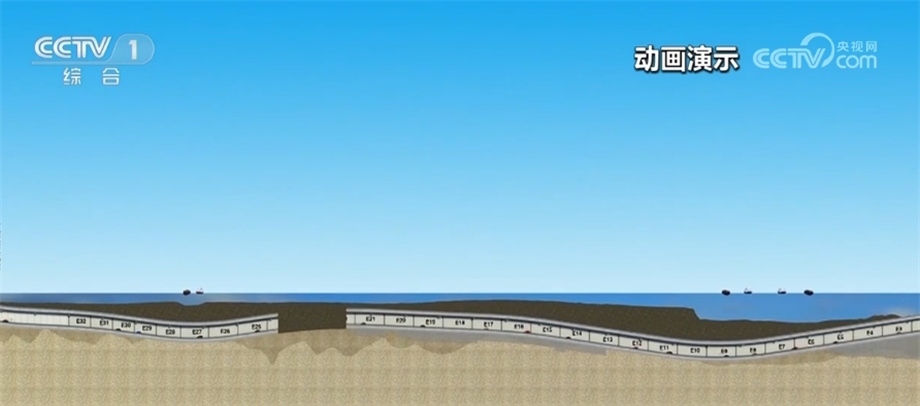 總臺央視記者 李偉代:我身后就是深中通道西人工島,它是深中通道橋隧轉(zhuǎn)換的關(guān)鍵構(gòu)造;從這里開始,深中通道將從橋梁部分轉(zhuǎn)入全長6845米海底隧道部分,未來汽車將從這里駛?cè)牒5姿淼?,最深將在海?0米的沉管中行駛。