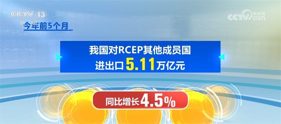 隨著區(qū)域經(jīng)濟(jì)交往不斷互聯(lián)互通,我國對《區(qū)域全面經(jīng)濟(jì)伙伴關(guān)系協(xié)定》(RCEP)其他成員進(jìn)出口穩(wěn)定增長,今年前5個(gè)月,我國對RCEP其他成員國進(jìn)出口5.11萬億元,同比增長4.5%,RCEP占我國外貿(mào)比重超過30%。