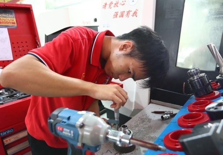 “我們希望讓大家看到,并不是要進(jìn)入大學(xué)才算成功,中國(guó)制造的高質(zhì)量發(fā)展呼喚高質(zhì)量的職業(yè)教育,希望更多的年輕人能投入這一片藍(lán)海?!比~軍鋒說。