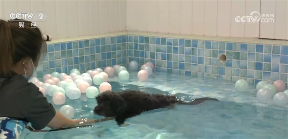 有著一身黑毛的小狗“煤球”,在這個(gè)炎熱的夏天首次嘗試了游泳。在工作人員的引導(dǎo)下,它終于鼓起勇氣脫掉泳衣,成功下水。