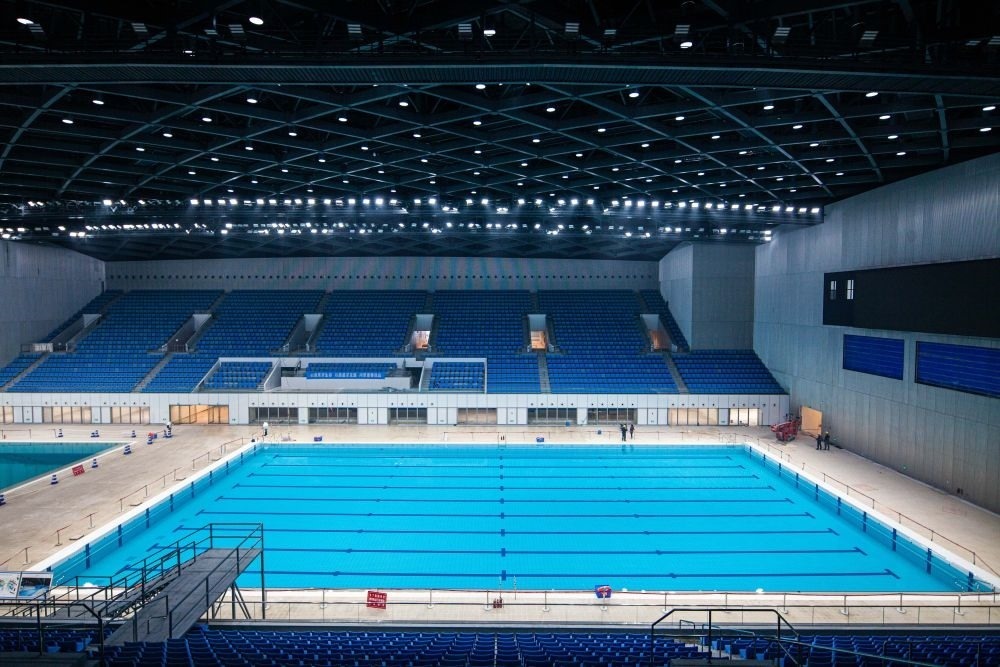 杭州奧體中心游泳館可容納觀眾6000人,設有比賽池、跳水池、熱身池等五個水池,將舉辦杭州亞運會游泳、跳水和花樣游泳三項比賽,決出53枚金牌,是杭州亞運會產生金牌最多的場館。