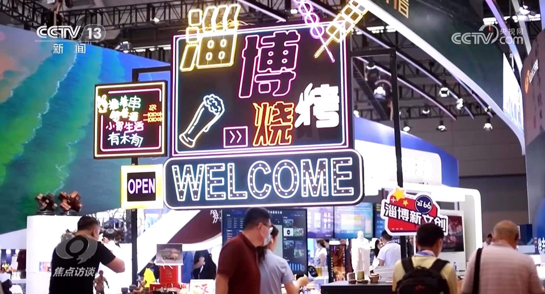 要說本次文博會最吸引人的展位,淄博燒烤算一個??墒?,燒烤怎么進了文博會?原來,這是一個2.8米長的軟陶泥塑微縮景觀,生動還原了淄博燒烤的現(xiàn)實場景。此外,展臺上的琉璃燒烤大餐也吸引了不少人拍照打卡。當然,現(xiàn)場還是有可以吃的美食——大名鼎鼎的山東煎餅。