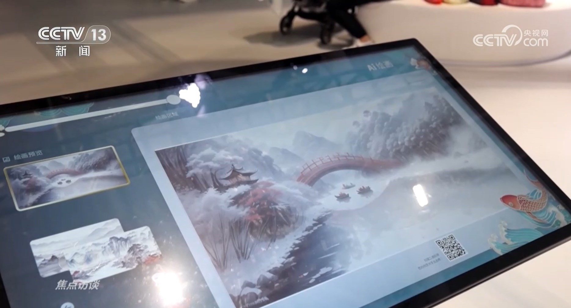 體驗一把AI繪畫是很多觀展小朋友的愿望,從一名繪畫小白變成國畫大師需要多久?文博會給我們的答案是5秒。深圳某科技公司剛剛研發(fā)出的AI作畫機,根據用戶畫出的圖案不斷進行造型演變,展開豐富聯(lián)想最終創(chuàng)作合成出國風山水畫作。