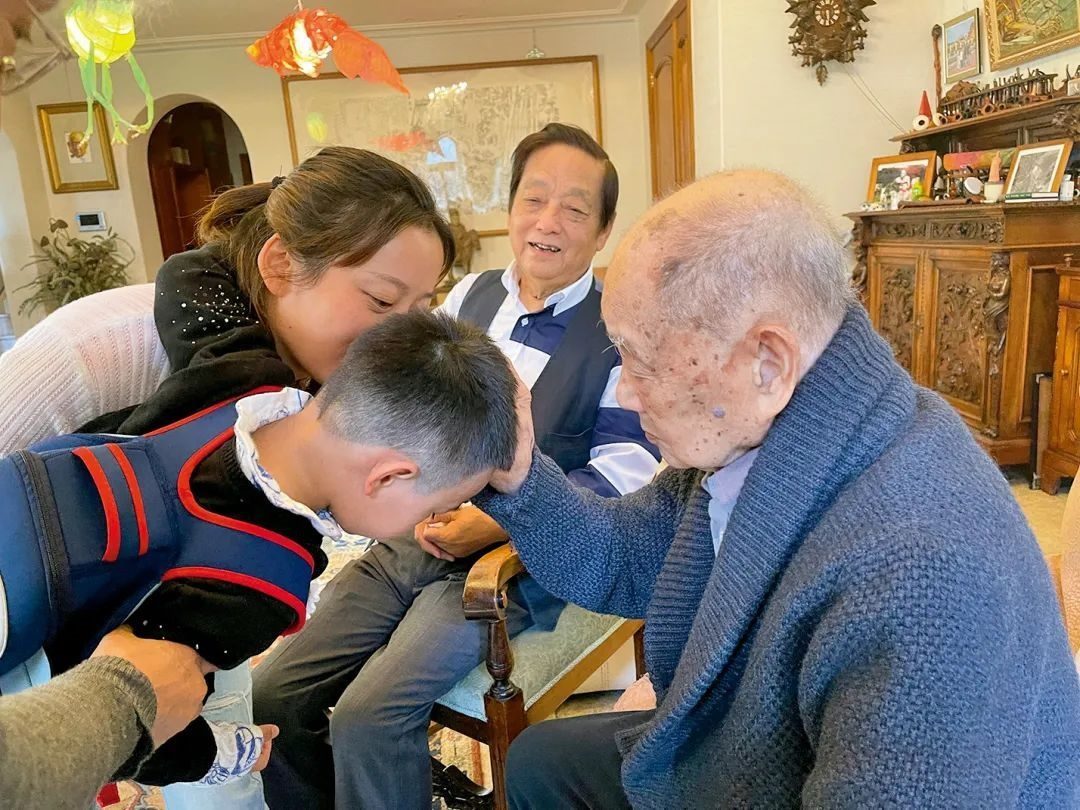 黃老看到天予甚為高興,美林請(qǐng)黃老摸摸兒子的頭,說(shuō)讓黃老加持下,未來(lái)成為“小黃永玉”。黃老高興地摸著天予的頭,天予對(duì)黃老說(shuō):“我理發(fā)了”,這一句話把黃老逗笑了。