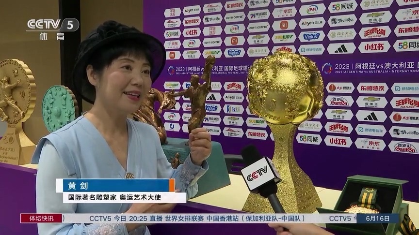 國(guó)際著名雕塑家 奧運(yùn)藝術(shù)大使 黃劍:設(shè)計(jì)的時(shí)候我在想,怎么讓這個(gè)紀(jì)念杯更加有它的魅力,既有文化內(nèi)涵,又有一種創(chuàng)新魅力。所以我就把它做成了一個(gè)音樂轉(zhuǎn)動(dòng)的雕塑紀(jì)念杯,想讓球王梅西拿著有一種珍藏的心。
