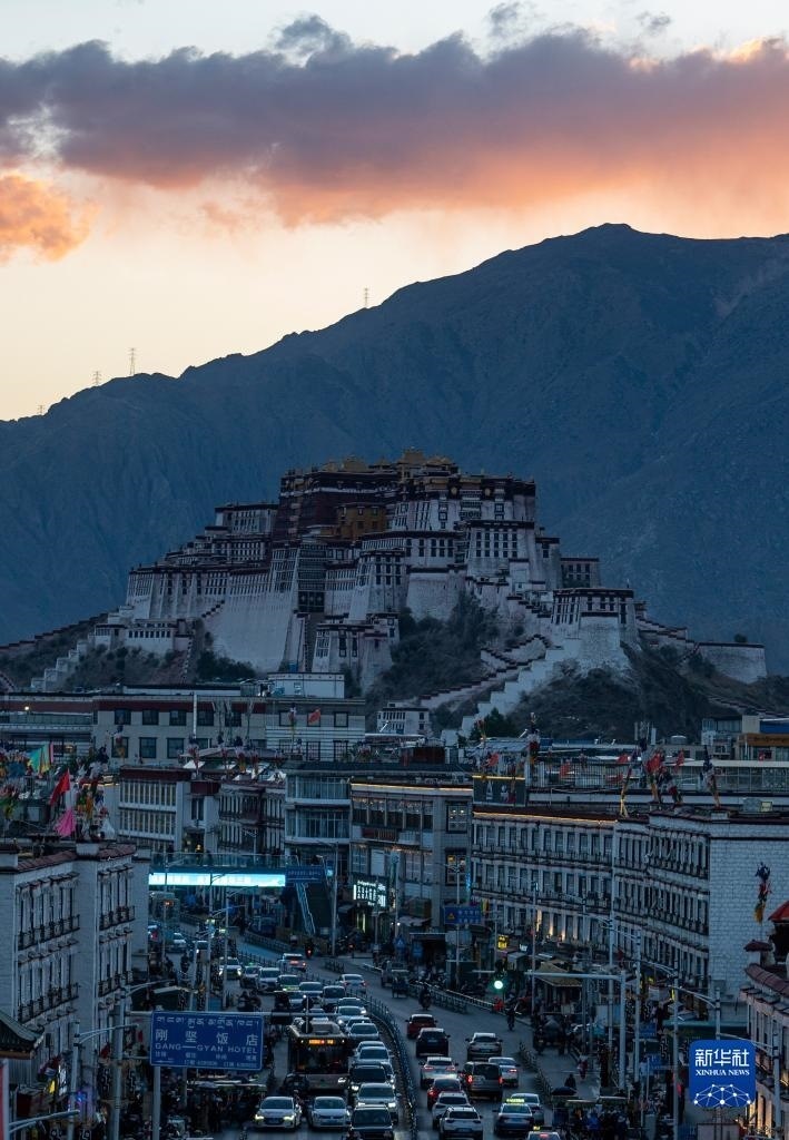 這是日落時(shí)分的布達(dá)拉宮(6月7日攝)。