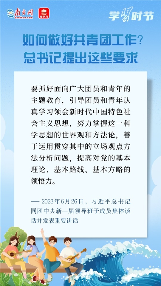 6月26日,習(xí)近平總書記同團(tuán)中央新一屆領(lǐng)導(dǎo)班子成員集體談話并發(fā)表重要講話??倳洀?qiáng)調(diào),黨和國家事業(yè)的希望寄托在青年身上。希望共青團(tuán)中央深入貫徹黨中央要求,切實(shí)肩負(fù)起新時代新征程黨賦予的使命任務(wù),傳承弘揚(yáng)優(yōu)良傳統(tǒng),堅(jiān)持改革創(chuàng)新,更好把青年一代團(tuán)結(jié)凝聚在黨的周圍,為推進(jìn)強(qiáng)國建設(shè)、民族復(fù)興偉業(yè)接續(xù)奮斗。