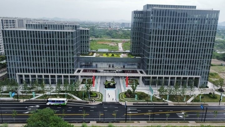 位于浙江杭州市西湖區(qū)雙浦鎮(zhèn)的西湖—淳安山海協(xié)作“共富飛地”千島湖智邦大廈正式開(kāi)園(2023年8月28日攝)。新華社發(fā)