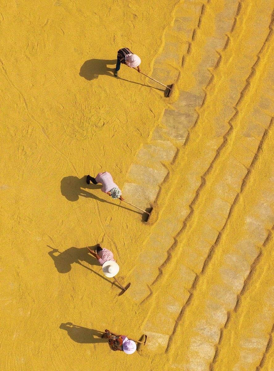 金秋時節(jié),全國各地陸續(xù)進入收獲季,農民搶抓農時收獲晾曬,田間一派喜人的豐收圖景。