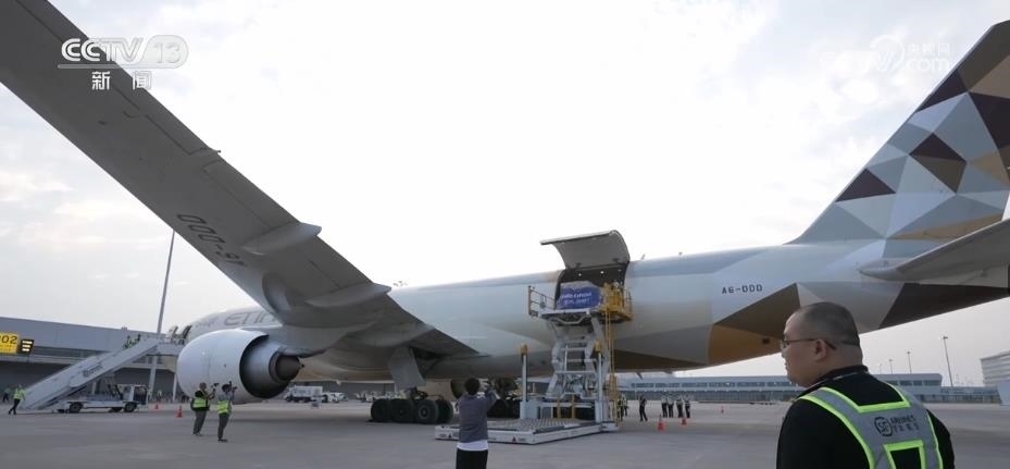 作為亞洲首個(gè)專業(yè)貨運(yùn)機(jī)場(chǎng),鄂州花湖機(jī)場(chǎng)的國際貨運(yùn)班機(jī)一片繁忙。這種裝有100噸左右跨境物流包裹的貨運(yùn)飛機(jī),10個(gè)多小時(shí)后就能抵達(dá)德國法蘭克福機(jī)場(chǎng)。像這樣的國際貨運(yùn)航班,鄂州花湖機(jī)場(chǎng)每周要起落28架次,截至2023年8月,已累計(jì)將超過1.5萬噸貨物運(yùn)往海外。