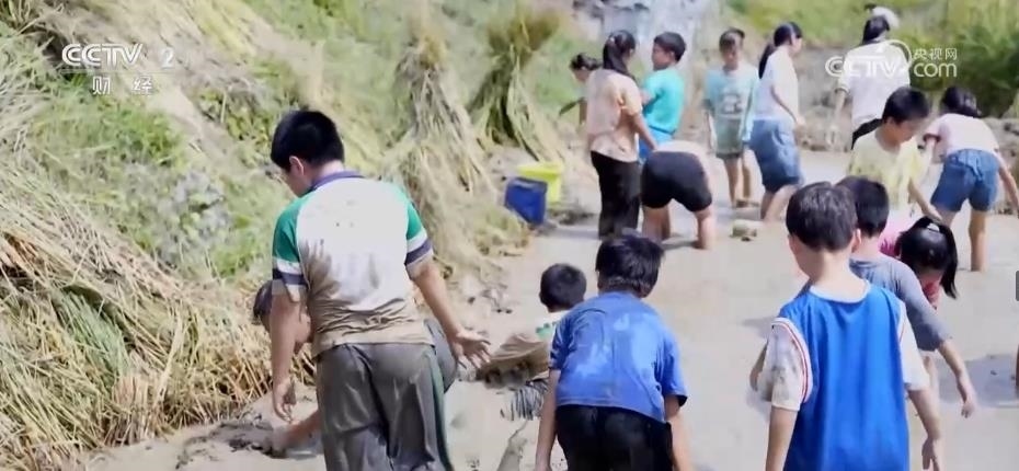 為慶祝“巨型稻”試種成功,當?shù)剡€舉行了一場“扮禾抓魚”比賽,村民們分成幾組,進行人工收割、踩禾桶脫粒、扎稻草。孩子們則跳進水溝抓魚,感受田園樂趣。