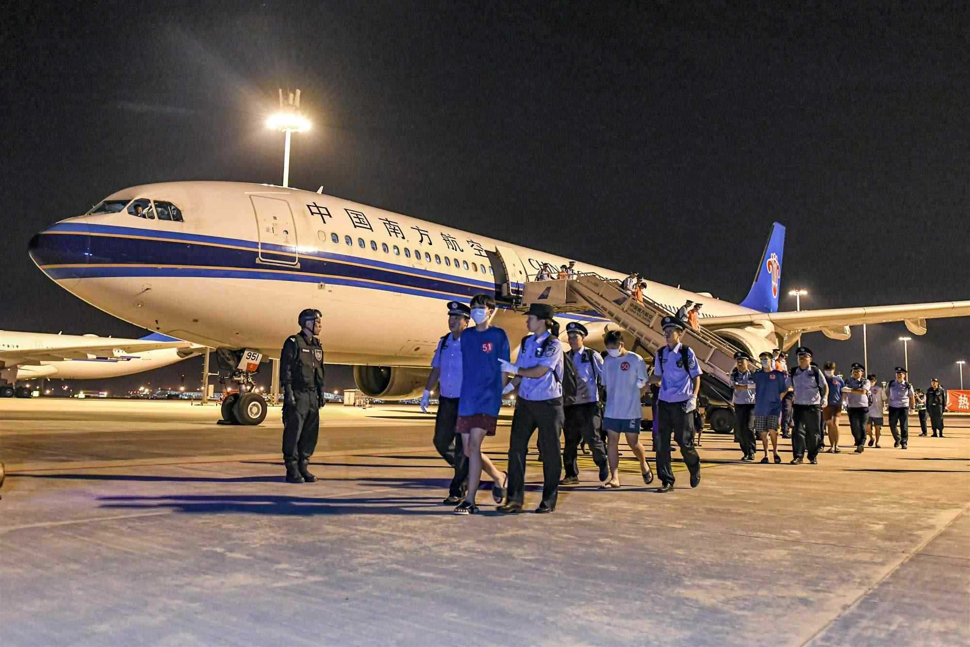 央視網消息:9月20日晚,隨著三架中國民航包機分別降落在北京大興國際機場和濟南遙墻國際機場,前期中國警方和印度尼西亞警方通過警務執(zhí)法合作抓獲的153名實施跨境裸聊敲詐的電信網絡詐騙犯罪嫌疑人,被北京、山東公安機關從印尼押解回國,涉及全國多個省市的百余起跨境裸聊敲詐案件成功告破。