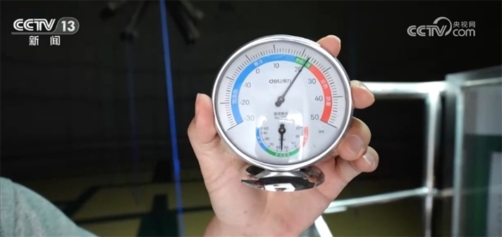 我現(xiàn)在是在氣膜倉的頂部,此刻倉外的溫度是30℃左右,我們再到倉內(nèi)看一下。一進(jìn)來就感覺倉里邊一股涼氣襲人,我們來看這個(gè)溫度計(jì)上顯示此刻的溫度大概是在22℃,也就是說倉內(nèi)外的溫差有8℃左右,保溫性能還是非常明顯的。