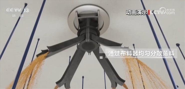 倉內(nèi)頂部安裝的布料器能讓大豆入倉時(shí)均勻、分散下落,減少糧食的自動分級和雜質(zhì)的聚集,更有利于后續(xù)的安全保管。