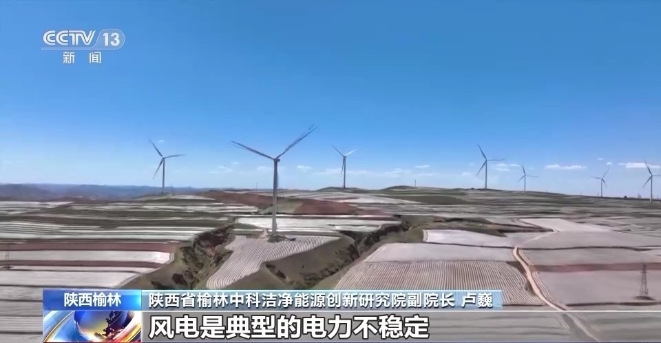 陜西省榆林中科潔凈能源創(chuàng)新研究院副院長 盧巍:風(fēng)電是典型的電力不穩(wěn)定,風(fēng)大多一點(diǎn),風(fēng)小少一點(diǎn),然后再就是這個(gè)光伏,今天有太陽,可能發(fā)得就多一點(diǎn),今天陰天,可能就發(fā)得少一點(diǎn),甚至不發(fā)電。