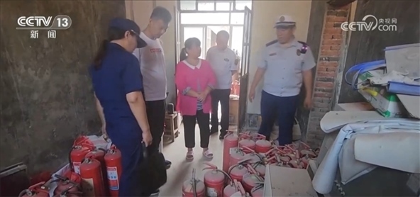 在山東棗莊,當?shù)毓病⑾?、市場監(jiān)督管理部門組成聯(lián)合檢查組,對滅火器材充裝點進行檢查。在一處自建房院內(nèi)的倉庫,檢查人員發(fā)現(xiàn)院內(nèi)堆放有2000余具待充裝及報廢的滅火器罐體,以及大量充裝原料和稱重工具,其中多數(shù)鋼瓶瓶身已經(jīng)銹跡斑斑,甚至出現(xiàn)破損開裂情況。