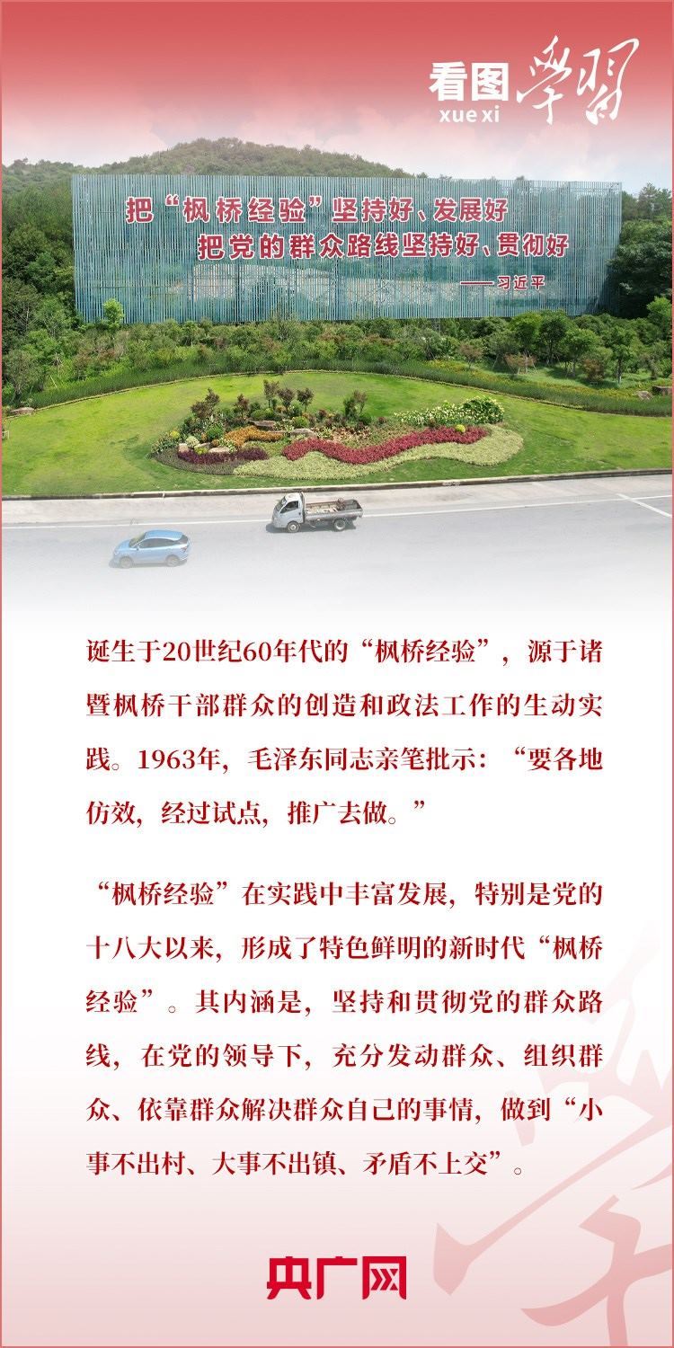 9月20日,習(xí)近平總書記在浙江考察,來到“楓橋經(jīng)驗”發(fā)源地諸暨市楓橋鎮(zhèn),參觀楓橋經(jīng)驗陳列館,強(qiáng)調(diào)要堅持好、發(fā)展好新時代“楓橋經(jīng)驗”。