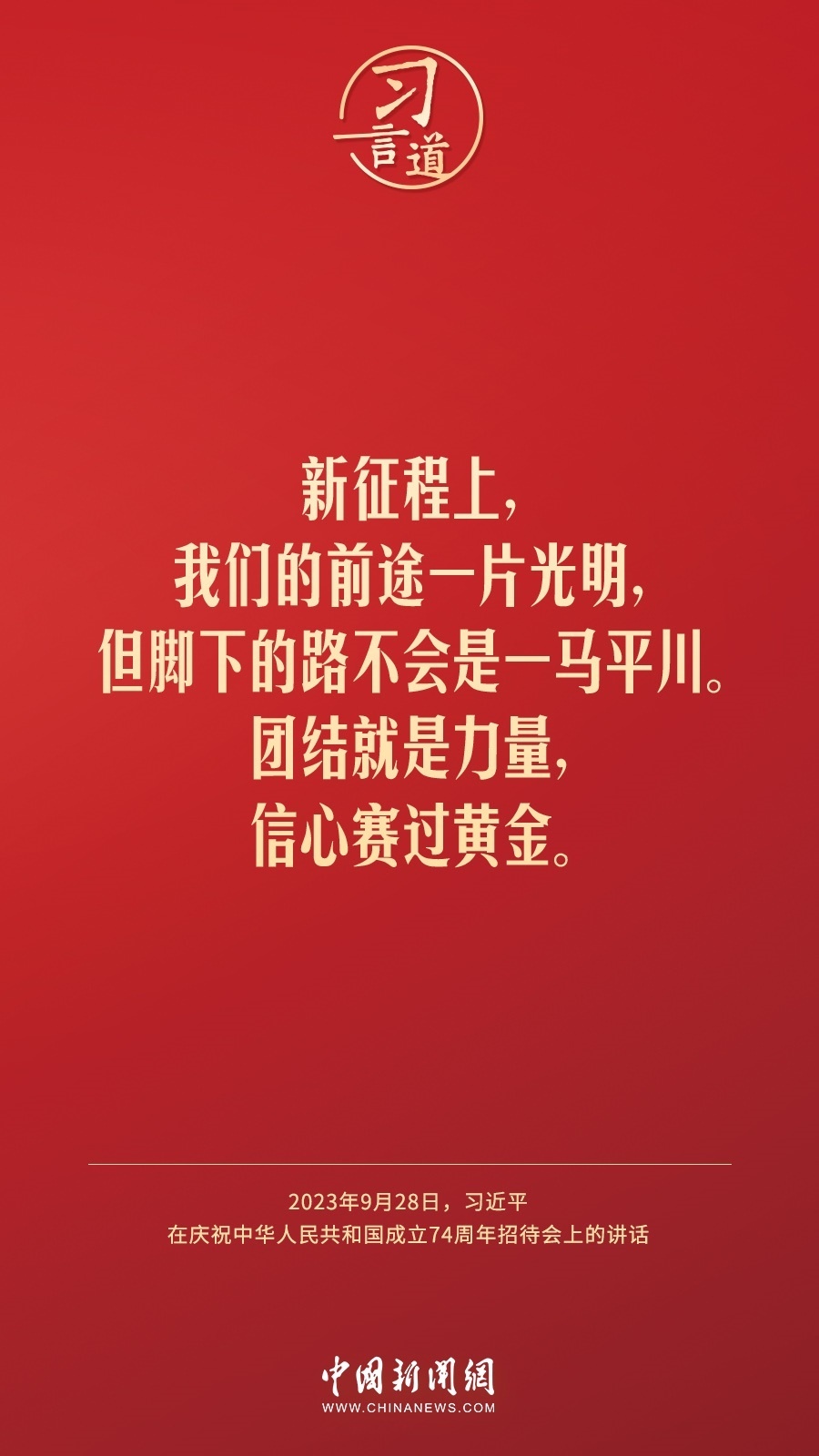 慶祝中華人民共和國成立74周年招待會28日晚在人民大會堂舉行。中共中央總書記、國家主席、中央軍委主席習(xí)近平出席招待會并發(fā)表重要講話。他強調(diào)——