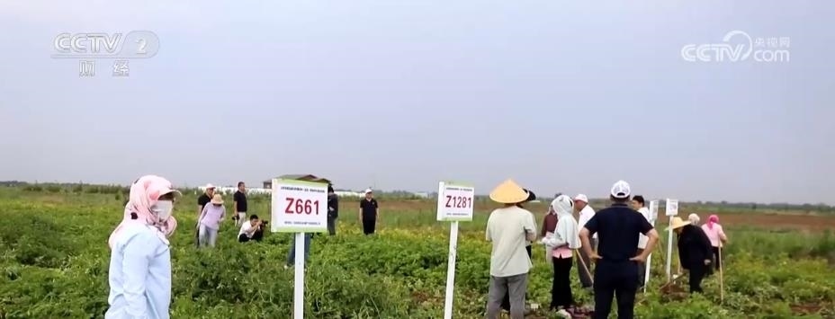 張慶喜所說的耐鹽堿品種是破解鹽堿地開發(fā)利用的另一個關(guān)鍵。記者在當?shù)佧}堿地農(nóng)業(yè)示范基地采訪時,正好趕上科學家團隊研發(fā)的耐鹽堿馬鈴薯新品種測產(chǎn)驗收。經(jīng)過1個多小時現(xiàn)場測產(chǎn),結(jié)果顯示,在2‰輕度鹽堿地上示范推廣的兩個品系畝產(chǎn)達到3300公斤左右的較高產(chǎn)量水平。