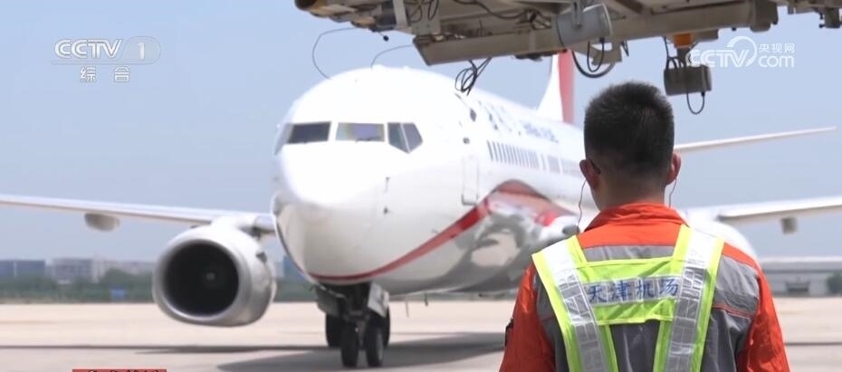 天津濱海國際機場有限公司地勤部機務分部副主任 王凱:現(xiàn)在暑期也快到了,旅客出行也會越來越多,為了保障旅客安全和飛行安全,就算天再熱,我們也會堅守住自己的崗位,做好本職工作,保障飛機適航。
