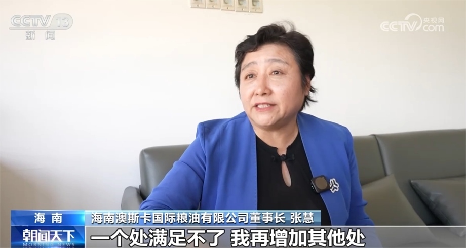 海南澳斯卡國際糧油有限公司董事長 張慧:就有一種熱情,能干成。實(shí)際上我已經(jīng)60多歲了,之前已經(jīng)退休了,但是為了自貿(mào)港,我說我還愿意再工作20年。