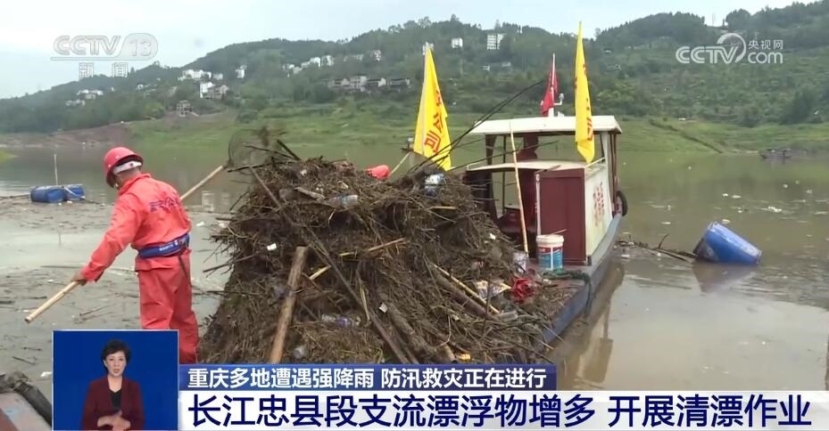 近段時間,重慶的強降雨天氣還導致長江重慶忠縣段各支流漂浮物增多。目前,多艘清漂船來回穿梭在江面上,分區(qū)域開展清漂作業(yè),清漂工人將江面漂浮物一一打撈上船,轉(zhuǎn)運上岸后再進行集中處理。7月3日以來,忠縣累計出動人工打撈船次80余船次,累計打撈垃圾約400余噸。此外,此輪長江洪峰過境忠縣后,長江忠縣段水位迎來上漲,當?shù)叵嚓P(guān)部門正密切關(guān)注水位變化。