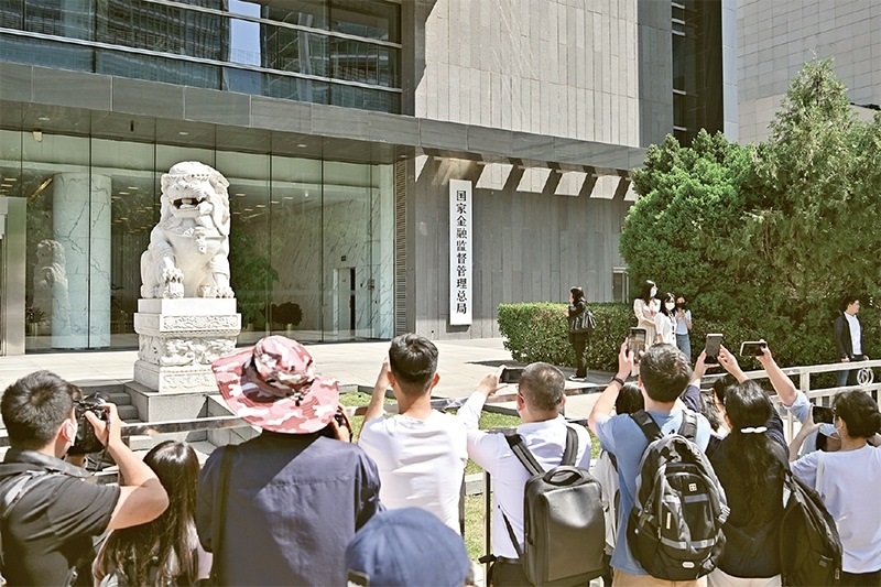 2023年5月18日,國(guó)家金融監(jiān)督管理總局正式掛牌,我國(guó)金融監(jiān)管機(jī)構(gòu)改革邁出重要一步。圖為當(dāng)日媒體記者在國(guó)家金融監(jiān)督管理總局門(mén)前拍攝。 新華社記者 李鑫/攝