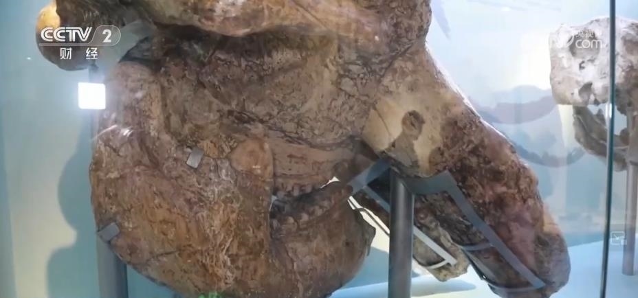 在古哺乳動物展廳,還陳列著另外一個明星展品——一具大象的頭骨。這也是迄今為止我國體型最大、保存最完整的劍齒象化石。