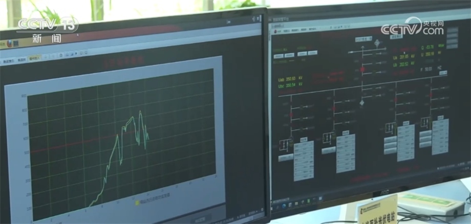 總臺記者 劉澤耕:我們現(xiàn)在來到的是龍羊峽水光互補(bǔ)光伏電站中控室,這塊屏幕上正在變化的數(shù)據(jù)是光伏電站發(fā)電的實(shí)時數(shù)據(jù)。光伏發(fā)電存在間歇性、波動性和隨機(jī)性等問題。在夜間,光伏電站出力為零,遇到陰雨天氣,云層遮擋住太陽,光伏電站發(fā)電能力也會迅速下降。這些因素都會導(dǎo)致光伏發(fā)電產(chǎn)生的電流呈現(xiàn)鋸齒狀,不僅會對電網(wǎng)造成沖擊,而且電壓不穩(wěn)定也會影響生產(chǎn)生活。而龍羊峽水電站水光互補(bǔ),完美解決了光伏發(fā)電“靠天吃飯”的難題。