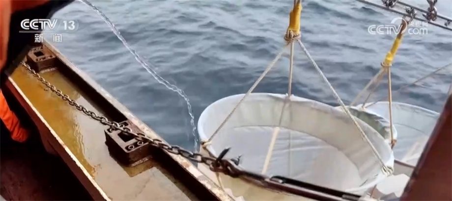 多參數(shù)海洋觀測系統(tǒng)是本次科考使用頻率最高的設(shè)備,涉及海洋化學(xué)、微生物等多個(gè)領(lǐng)域。在系統(tǒng)回收后,緊接著,隊(duì)員將垂直拖網(wǎng)放下水面。