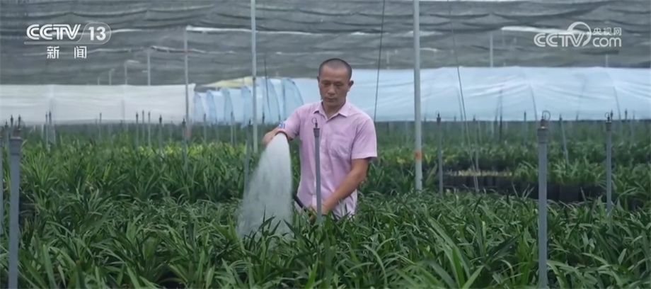 總臺(tái)央視記者 陳燁煒:今天室外的溫度在38℃左右,但是在蘭花的種植棚里是28℃左右,為什么室外和室內(nèi)的溫度能相差10℃?原因就在于在這個(gè)棚里面被安裝上了一系列的智能設(shè)備,一旦里面的溫度超過了設(shè)定值,這里的水簾、噴霧設(shè)備就會(huì)自動(dòng)開啟,來進(jìn)行一系列的調(diào)節(jié),以此來達(dá)到這些蘭花最適宜生長(zhǎng)的一個(gè)環(huán)境。