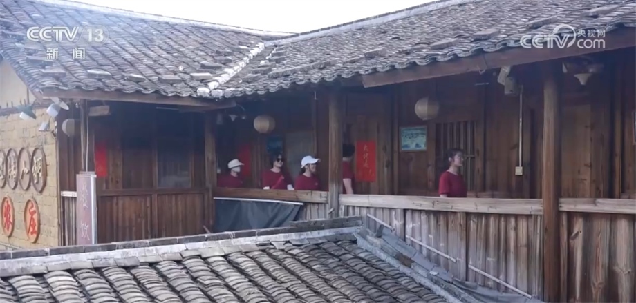 總臺(tái)央視記者 陳燁煒:我身后的這棟樓已經(jīng)有100多年的歷史,鵝卵石鋪成的小院、青磚砌成的外墻以及木質(zhì)結(jié)構(gòu)的房屋,處處在向我們傳遞著古老的文化氣息,多年前這里曾經(jīng)是當(dāng)?shù)鼐用窬幼〉姆课荩鼛啄杲?jīng)過改造后,已經(jīng)成了很多外地游客慕名前來的網(wǎng)紅打卡地。