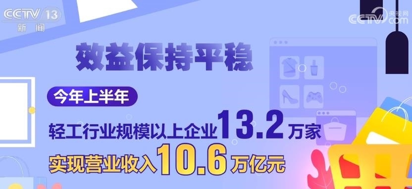 效益保持平穩(wěn)。今年上半年,輕工行業(yè)規(guī)模以上企業(yè)13.2萬家,實現(xiàn)營業(yè)收入10.6萬億元,同比增長2.1%,高于全國工業(yè)2.5個百分點,實現(xiàn)利潤5682億元。