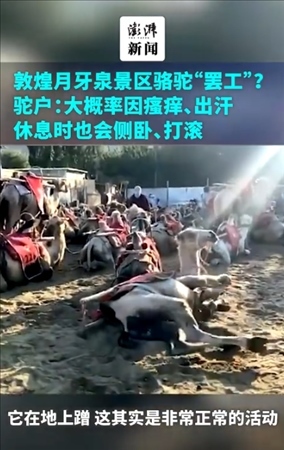 ·敦煌景區(qū)駱駝“罷工”?駝戶:或因瘙癢出汗,休息會側(cè)臥打滾。