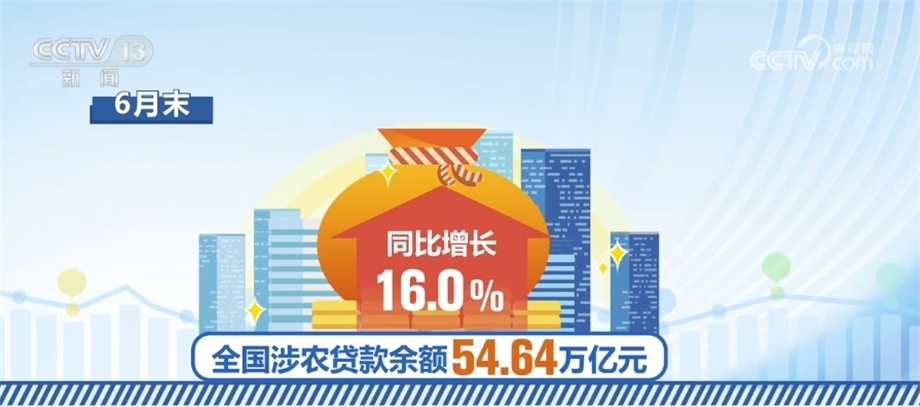 上半年,涉農(nóng)貸款余額也保持較快增長。6月末,全國涉農(nóng)貸款余額54.64萬億元,同比增長16.0%;其中普惠型涉農(nóng)貸款余額12萬億元,同比增長21.03%,超過各項貸款平均增速10.3個百分點。