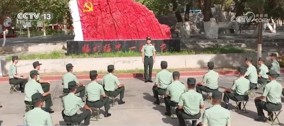 八一建軍節(jié)當天,新疆軍區(qū)某紅軍團組織升國旗儀式,官兵們整齊列隊向國旗行軍禮。升旗儀式結束后,部隊在營區(qū)內“黨旗山”下為部分官兵頒發(fā)衛(wèi)國戍邊紀念章,以此表彰他們對維護祖國繁榮作出的貢獻。