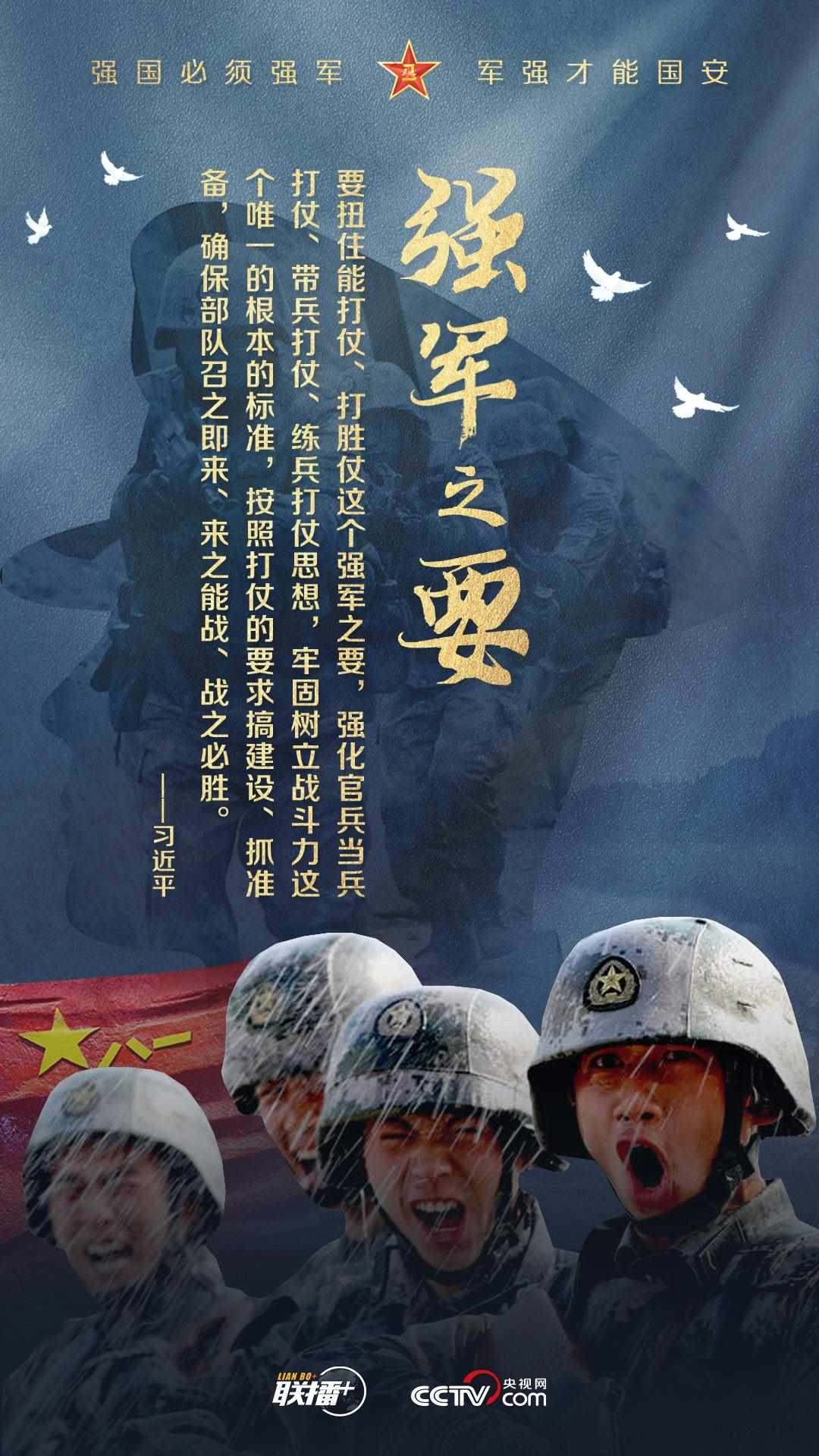黨的十八大以來,習(xí)近平主席始終高度重視國防和軍隊建設(shè),為全軍擘畫強(qiáng)軍興軍藍(lán)圖、指引奮進(jìn)方向。值此中國人民解放軍建軍96周年之際,央視網(wǎng)《聯(lián)播+》欄目制作強(qiáng)軍海報,與您一起學(xué)習(xí)習(xí)主席的強(qiáng)軍思想。