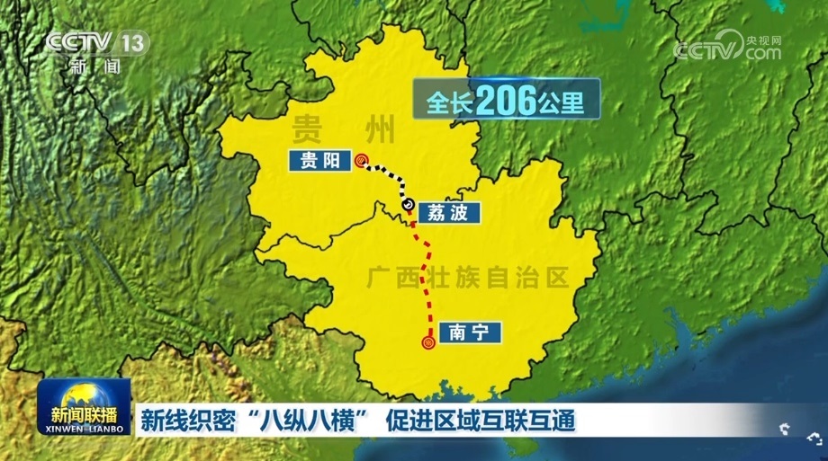 貴南高鐵連接貴陽和南寧,是“八縱八橫”高鐵網(wǎng)包頭至??谕ǖ赖闹匾M成部分。正線全長482公里,是黔桂兩地首條設計時速達350公里的高速鐵路。此次開通的貴陽至荔波段,全長206公里,貴陽至荔波最快只需57分鐘。