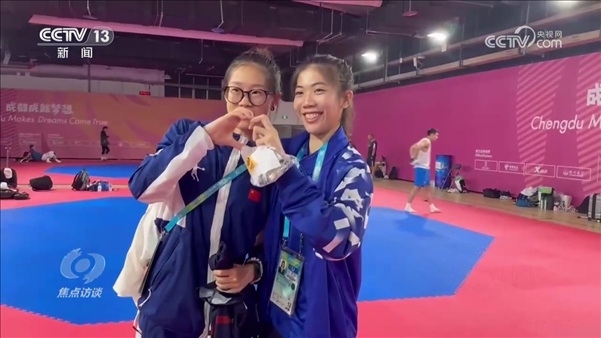 成都大運(yùn)會(huì),是青春的盛會(huì),也是一次友誼的盛會(huì)。來自世界各國(guó)的大學(xué)生們,一起競(jìng)技,一起生活。他們交流著彼此的運(yùn)動(dòng)技巧,同時(shí)也交流著彼此的文化和觀點(diǎn)。正在中國(guó)地質(zhì)大學(xué)就讀的跆拳道運(yùn)動(dòng)員羅妙溢,在成都大運(yùn)會(huì)中遇到了自己的偶像——東京奧運(yùn)會(huì)跆拳道女子49公斤級(jí)冠軍、泰國(guó)選手班妮巴。在自己不比賽的時(shí)候,羅妙溢會(huì)專門來給班妮巴加油。