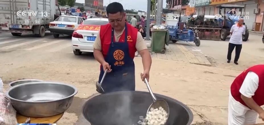 當天上午,樊達和十幾位愛心人士就趕往涿州,他們將攜帶的部分物資捐助給了多個村莊,然后將灶臺立在了西茨村的村口。中午熱面條、晚飯大鍋菜。